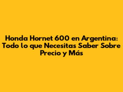 Recuerda investigar a fondo, comparar precios y examinar cuidadosamente la moto antes de comprarla. Considera el mantenimiento y los posibles costos asociados. Con la información adecuada y una buena investigación, podrás encontrar la Honda Hornet 600 perfecta para ti y disfrutar de muchos kilómetros de diversión en las carreteras argentinas. ¡Buena suerte con tu búsqueda y a disfrutar de la experiencia de conducir una Hornet 600!