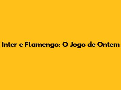 Inter E Flamengo: O Jogo De Ontem