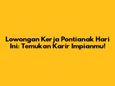 Lowongan Kerja Pontianak Hari Ini: Temukan Karir Impianmu!