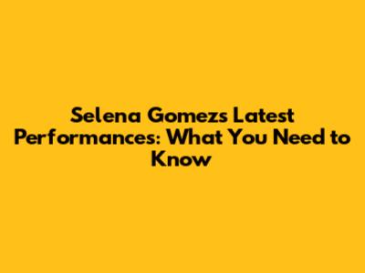 Selena Gomez's Latest Performances: What You Need To Know