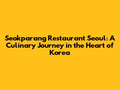 Seokparang: Seoul's Hidden Culinary Gem