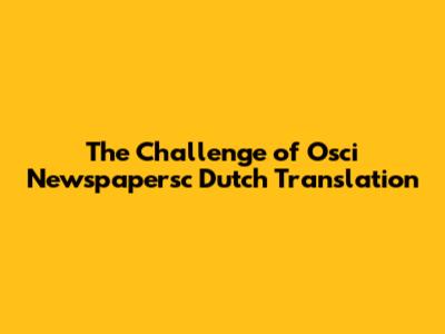 The Challenge Of 'Osci Newspapersc' Dutch Translation